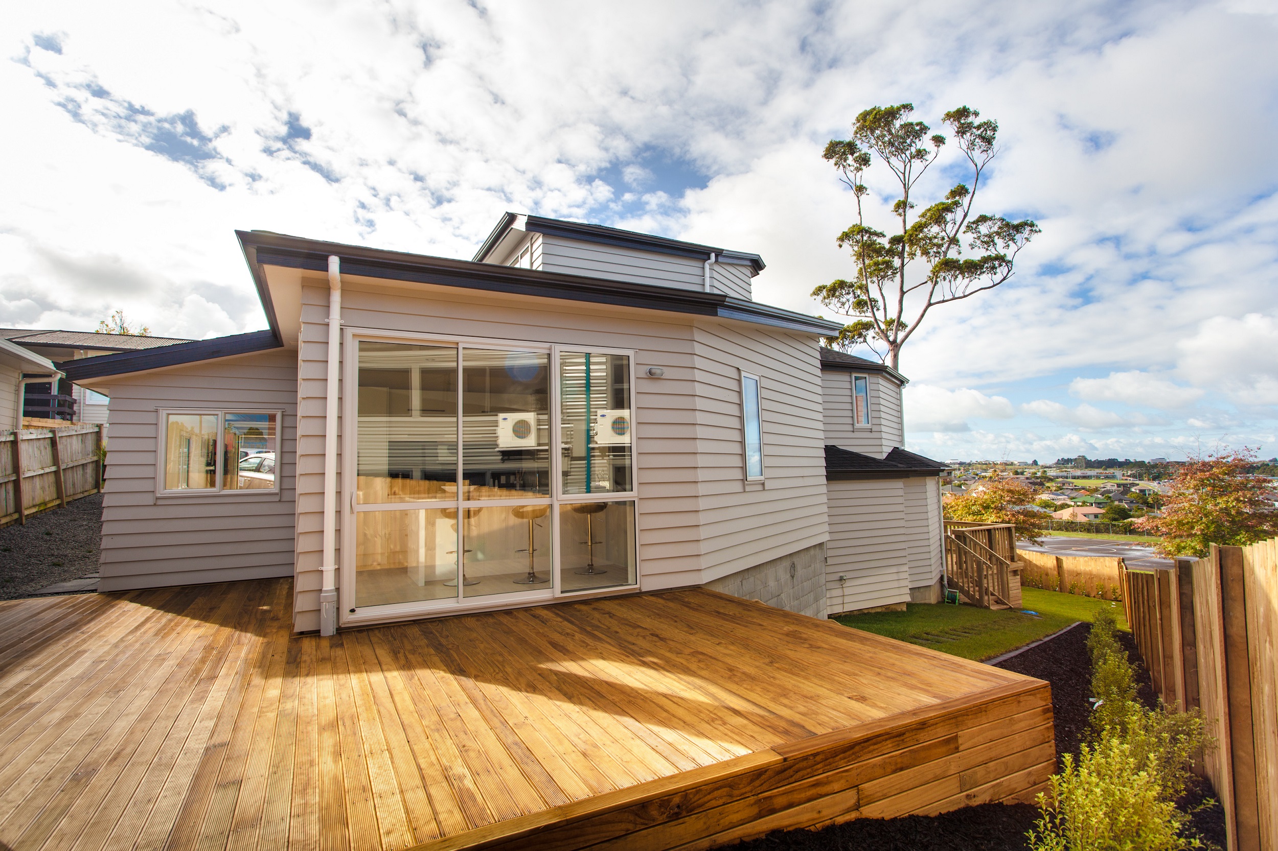 Location was very important in this project. The land was nicely positioned right next to a primary school and in great school zones. As well as being close the Albany Mall and Mega Centre, it also provided easy access to the motorway. The site gave a very open outlook provding a very spacious feel and not a feeling of being boxed in. With schools, shops and motorway access this made it an candidate for selling easily on the open market.